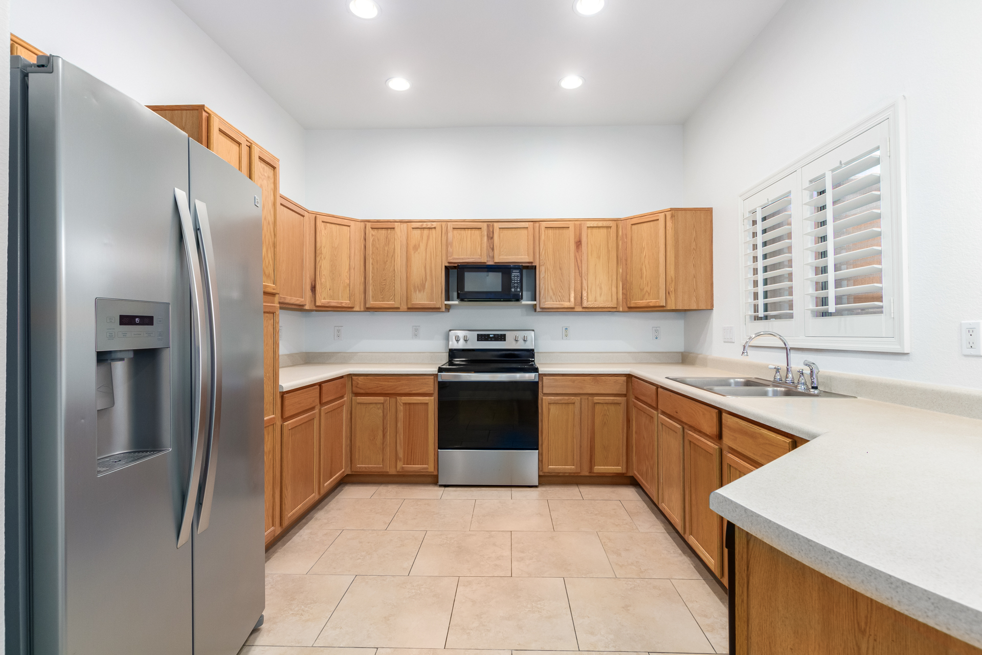 Beautifully updated 3-bedroom, 2.5-bath townhome in the gated Peoria Estates community! This spacious home offers an open floor plan with soaring vaulted ceilings, upgraded window shutters, tile and wood-look flooring throughout, and a convenient main-floor powder room. The kitchen opens to the dining and living areas, making it perfect for entertaining. Upstairs, the primary suite features a dual-sink vanity, large walk-in closet, and plenty of natural light. Enjoy a private backyard with low-maintenance turf and a covered patio, plus a 2-car garage with storage cabinets and a brand-new water heater. Community amenities include a pool and spa just steps away, and the location is unbeatable with quick access to Loop 101, P83 dining and entertainment, and Peoria Sports Complex.